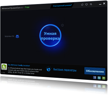 Advanced SystemCare 7 всего в один клик защитит, починит, очистит и оптимизирует ПК. Ее скачали 150 МИЛЛИОНОВ раз по всему миру. Эта исключительная по возможностям бесплатная программа, победитель многих конкурсов - обязательный инструмент на каждом ПК. Программой очень легко пользоваться, и она не содержит шпионских модулей.