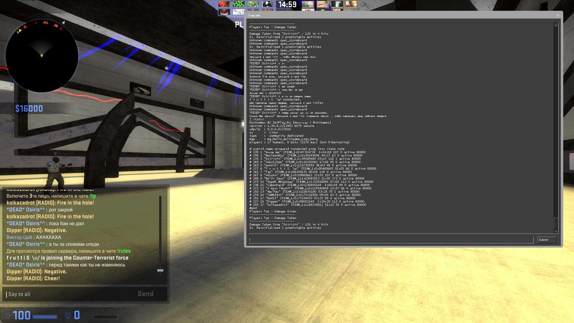 Зарегистрирован: 19:46:09, 7 ноя 2014 Сообщения: 104 Откуда: Россия, г.Нягань. Игровой ник: Osiris^^ Steam_ID: STEAM_1:1:39500484 |