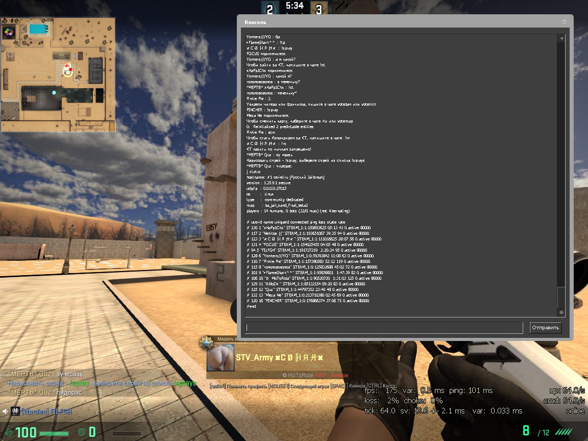 Зарегистрирован: 14:19:50, 1 май 2017 Сообщения: 29 Игровой ник: FILFGH Steam_ID: STEAM_0:1:191727219 |
