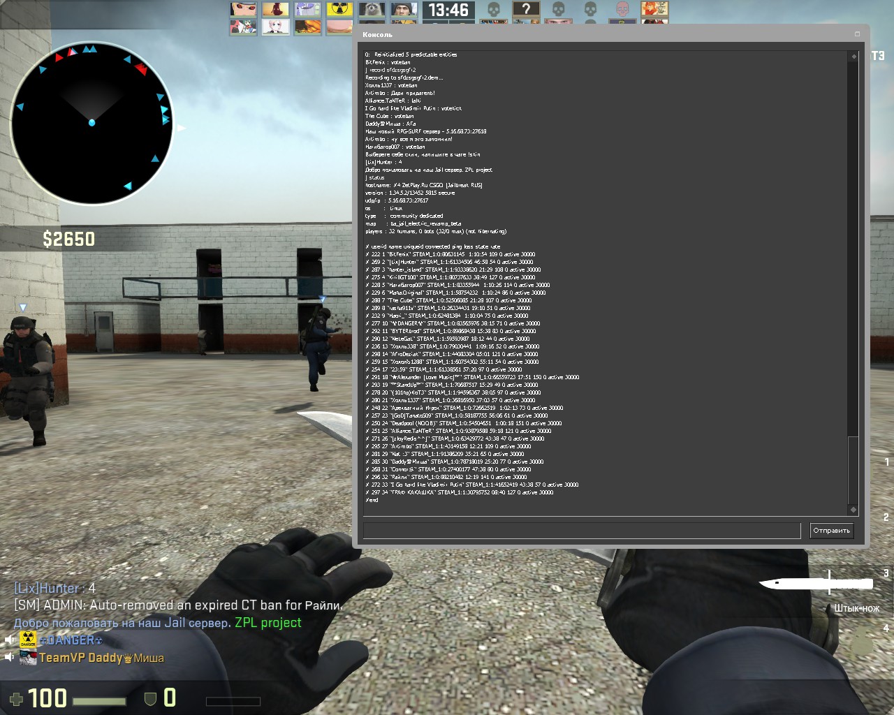Заголовок сообщения: "NeLeGaL" STEAM_1:1:59593987