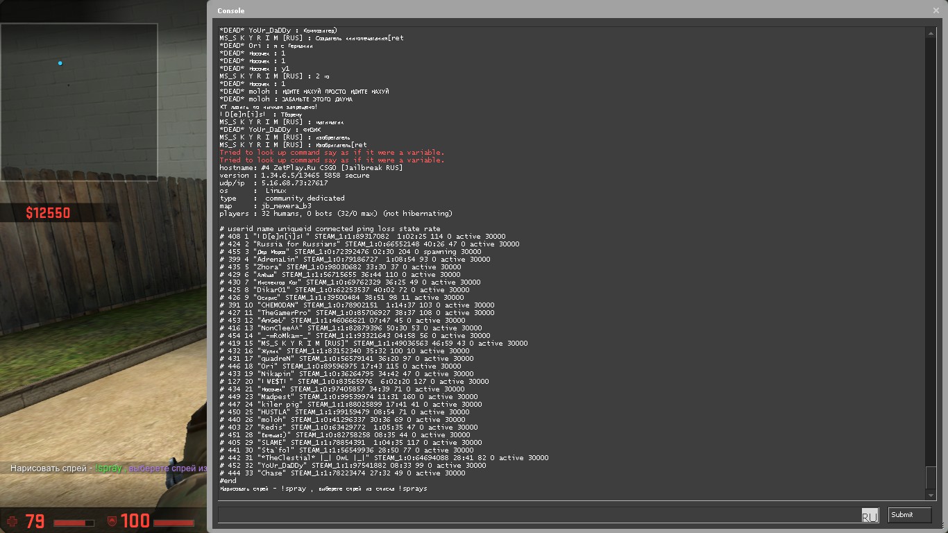 Заголовок сообщения: "moloh" STEAM_1:0:41296337