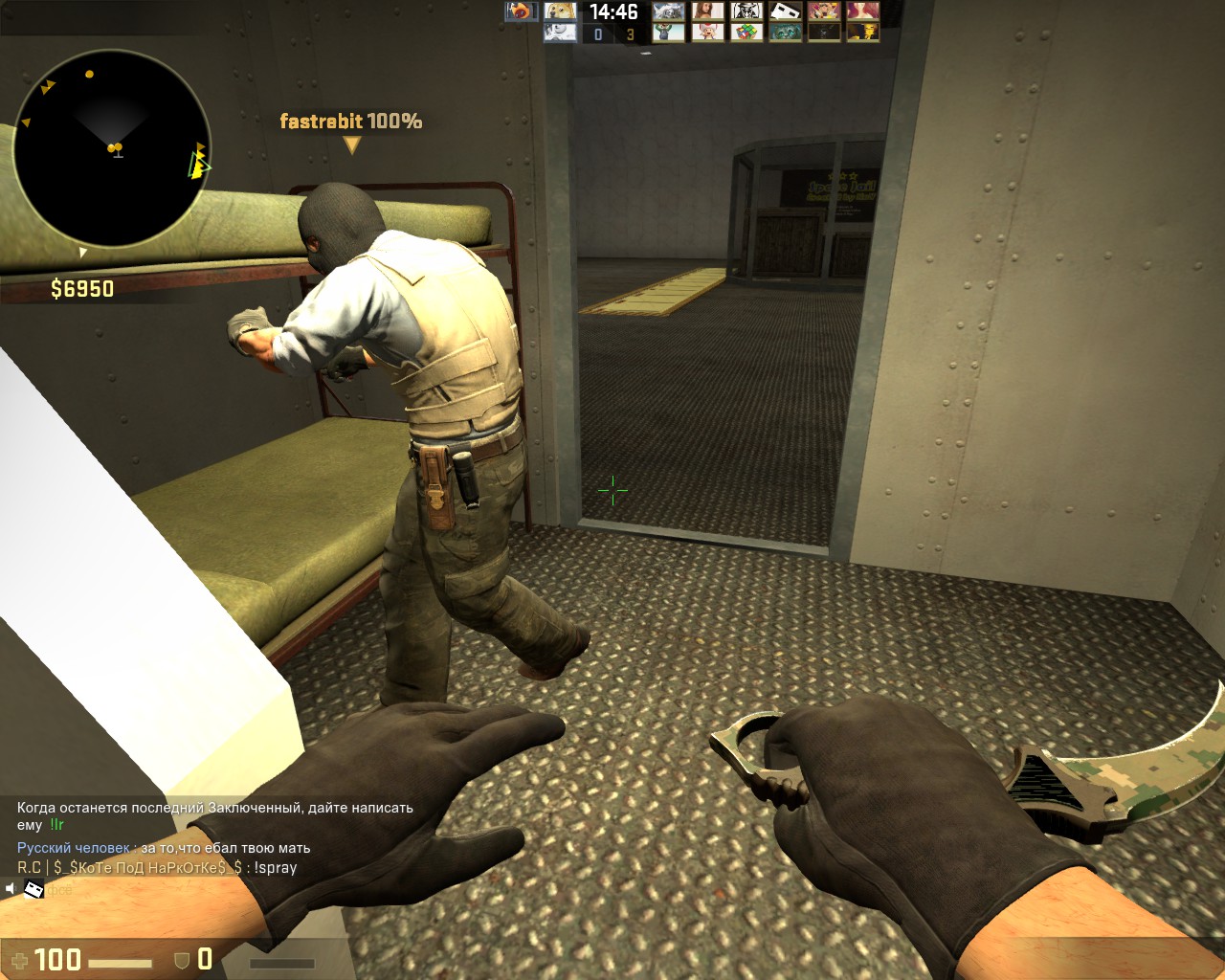 "Русский человек" STEAM_1:1:85661329 - был забанен на сервере через sm_admin, стим айди верный. Если не обратится в арбитраж, пусть остается в наказании.