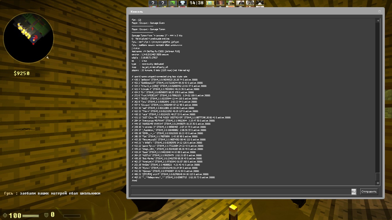 Зарегистрирован: 15:14:54, 11 сен 2014 Сообщения: 497 Игровой ник: black Steam_ID: STEAM_0:0:69762329 |