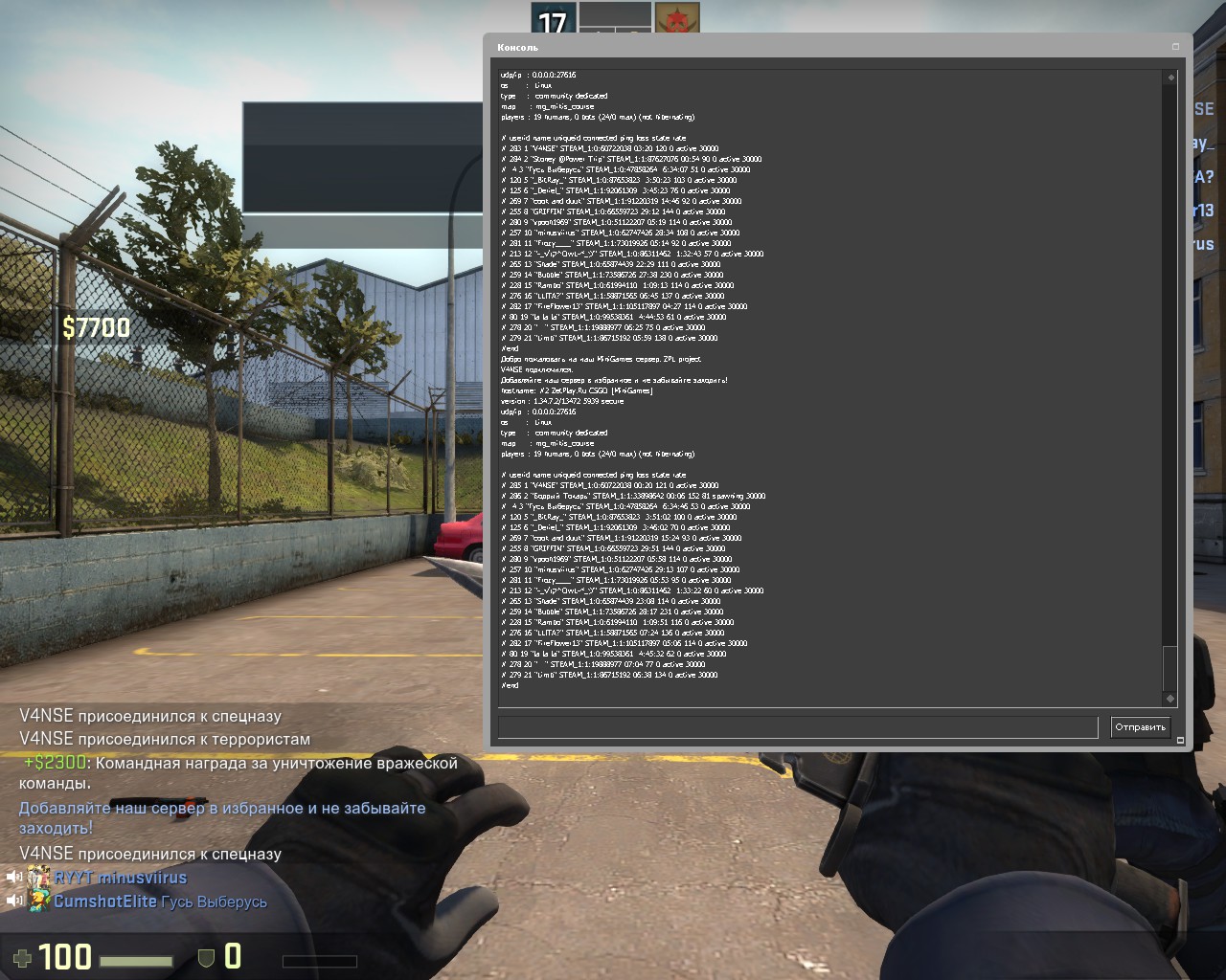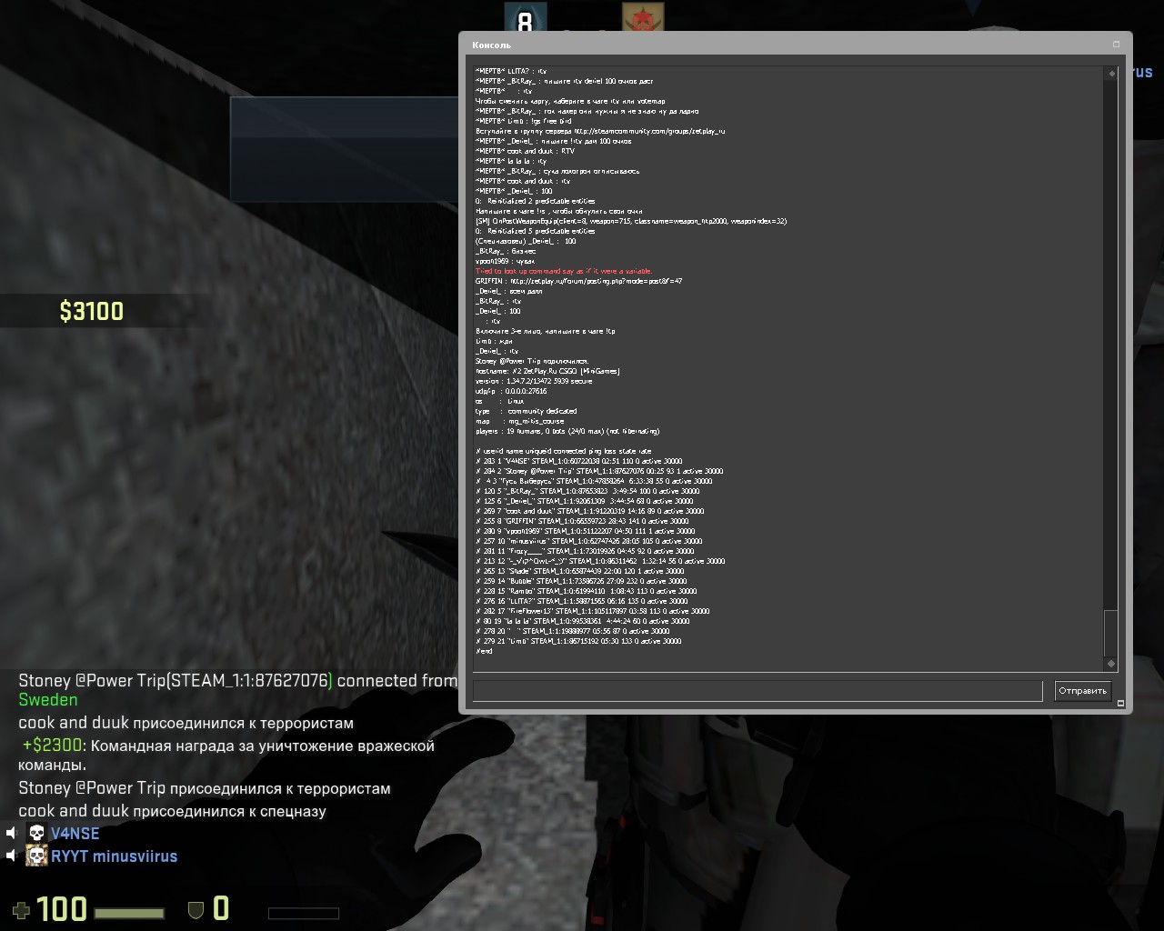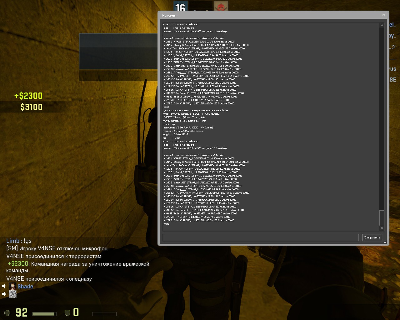 Заголовок сообщения: "V4NSE" STEAM_1:0:60722038 (ignoring admins)
