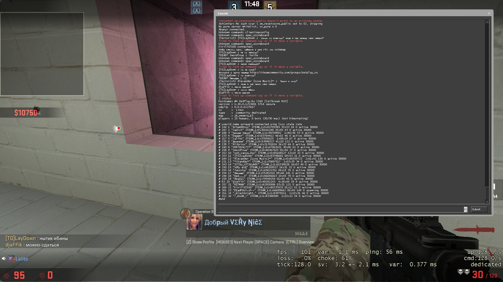 После отключения микрофона из за постоянных оскорблений, продолжил в чате мягче.