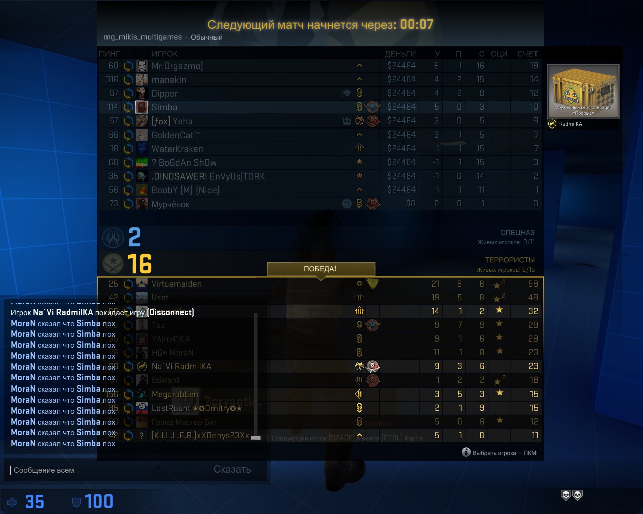 Зарегистрирован: 23:24:39, 5 дек 2014 Сообщения: 14 Игровой ник: DrugSeller Steam_ID: 76561198069493843/ |