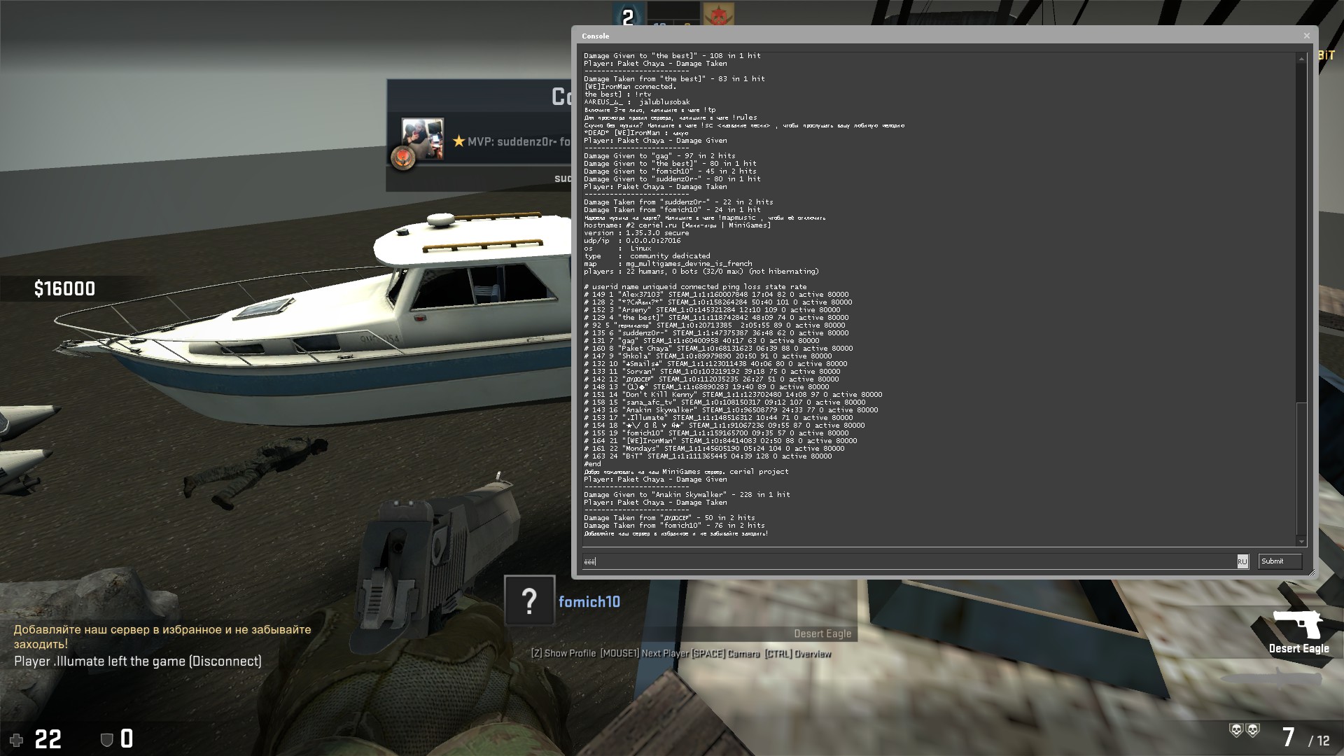Зарегистрирован: 7:03:07, 26 июн 2015 Сообщения: 41 Откуда: Курган Игровой ник: Paket Chaya Steam_ID: STEAM_1:0:68131623 |