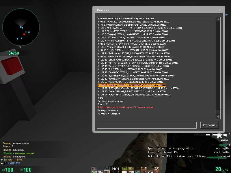Заголовок сообщения: 120 21 "LifeStyle" STEAM_1:0:99023567 47:23 70 0 active 8000