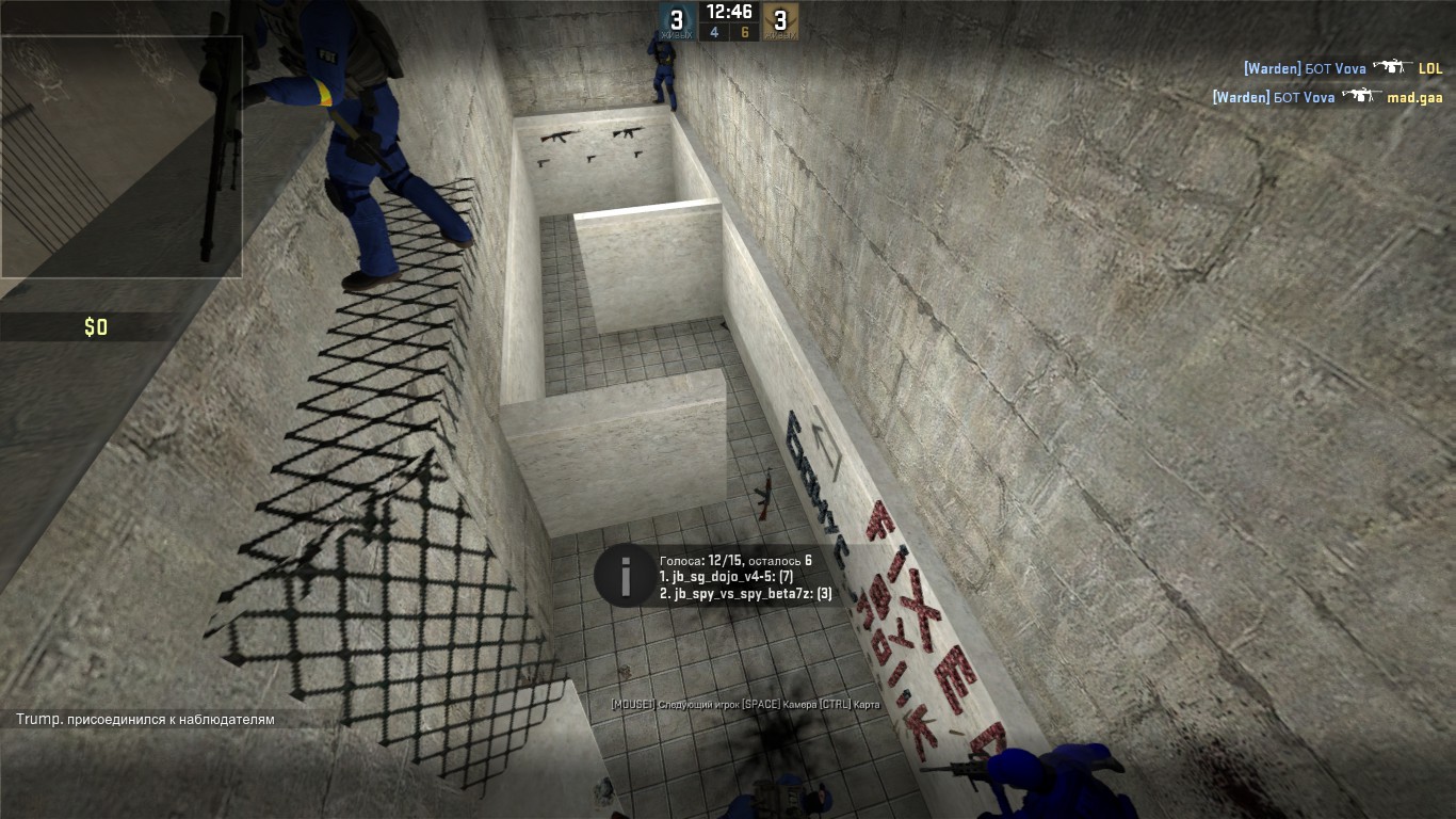NEW! Убедительная просьба для тех, кто выбирает место обороны - не использовать открытые пространства (без каких либо укрытий, пример - футбол на карте ba_jail_campus_2011_v5), невероятно маленькие помещения (пример - карцер на карте ba_jail_mini_fixed_b2) или же помещения с просвечивающимися стенами (с одной стороны) и т.п.