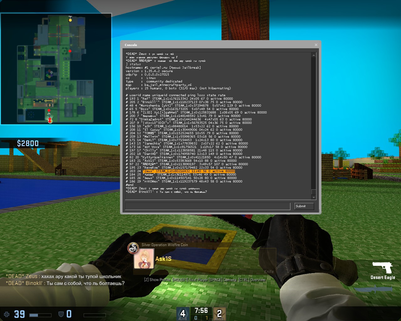 Зарегистрирован: 15:46:01, 11 ноя 2015 Сообщения: 40 Игровой ник: ANYQ Steam_ID: STEAM_0:0:1488228 |
