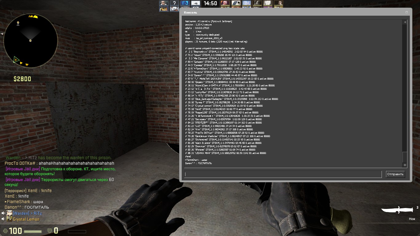 Зарегистрирован: 17:39:01, 1 окт 2014 Сообщения: 295 Игровой ник: Kenny Steam_ID: STEAM_1:1:64447993 |