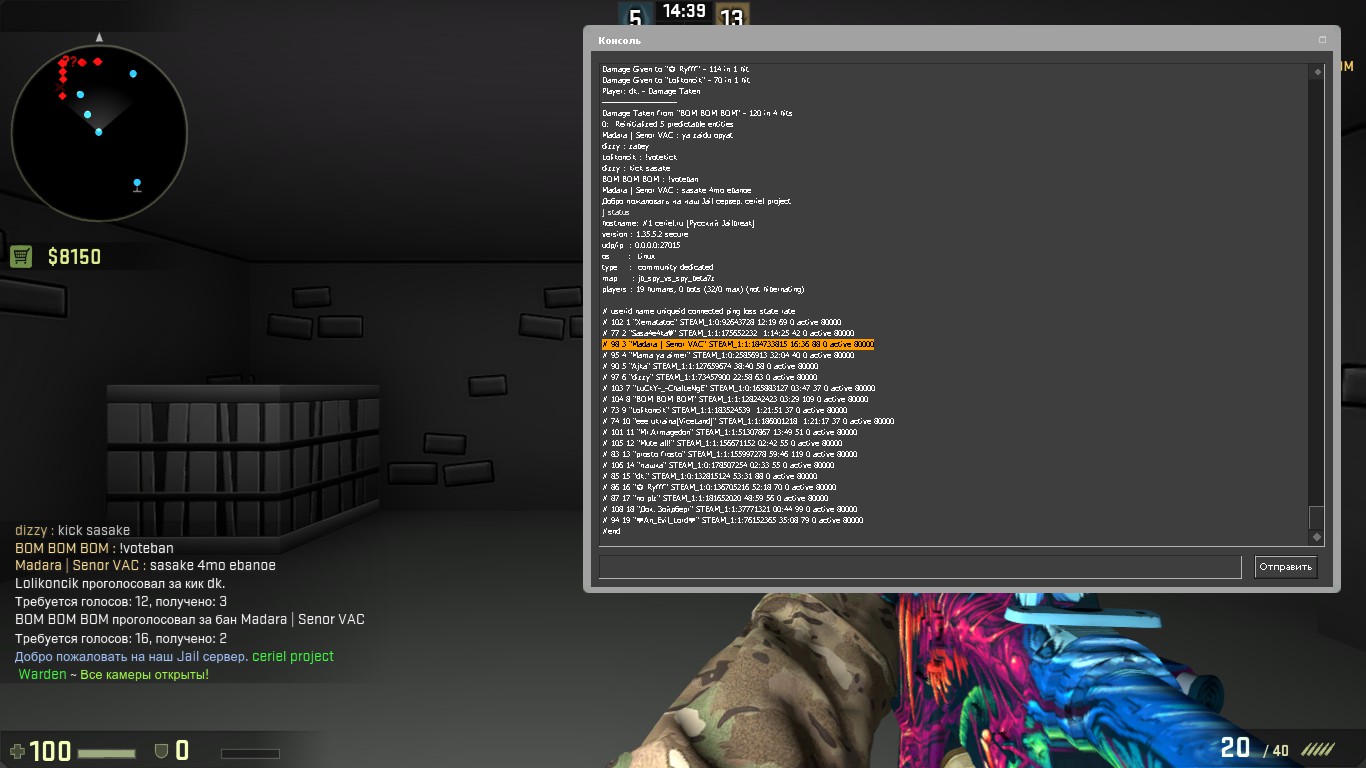 Зарегистрирован: 11:54:31, 6 ноя 2015 Сообщения: 43 Откуда: Из Москвы Игровой ник: dark Steam_ID: STEAM_1:0:132815124 |