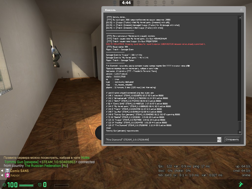 Заголовок сообщения: "Fire Diamond" STEAM_1:0:170206498 оскорбление