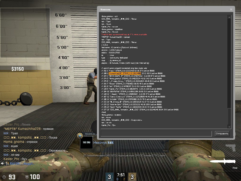 Заголовок сообщения: "Kumachiha228" STEAM_1:0:130234860