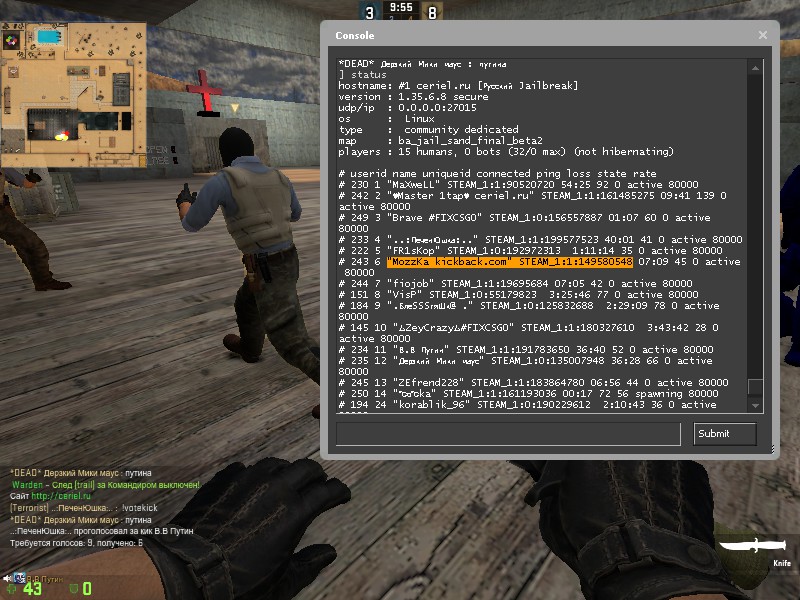 Заголовок сообщения: Re: "MozzKa kickback.com" STEAM_1:1:149580548