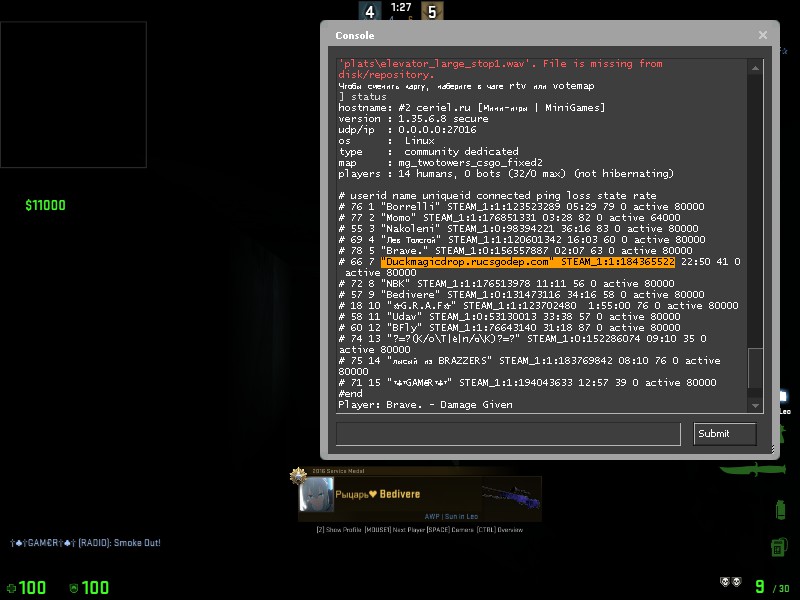 Заголовок сообщения: "Duckmagicdrop.rucsgodep.com" STEAM_1:1:184365522