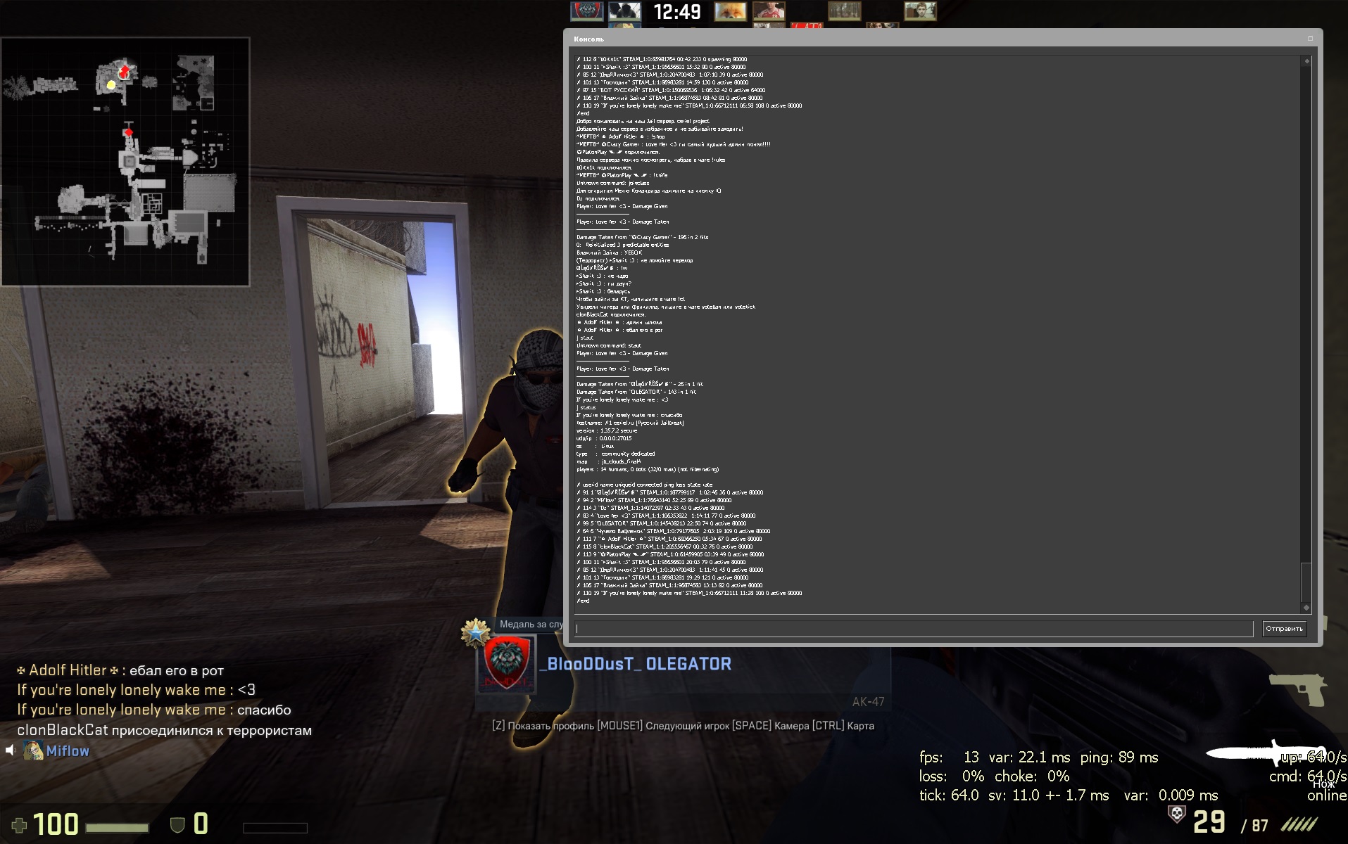 Заголовок сообщения: "✠ Adolf Hitler ✠" STEAM_1:0:68366250