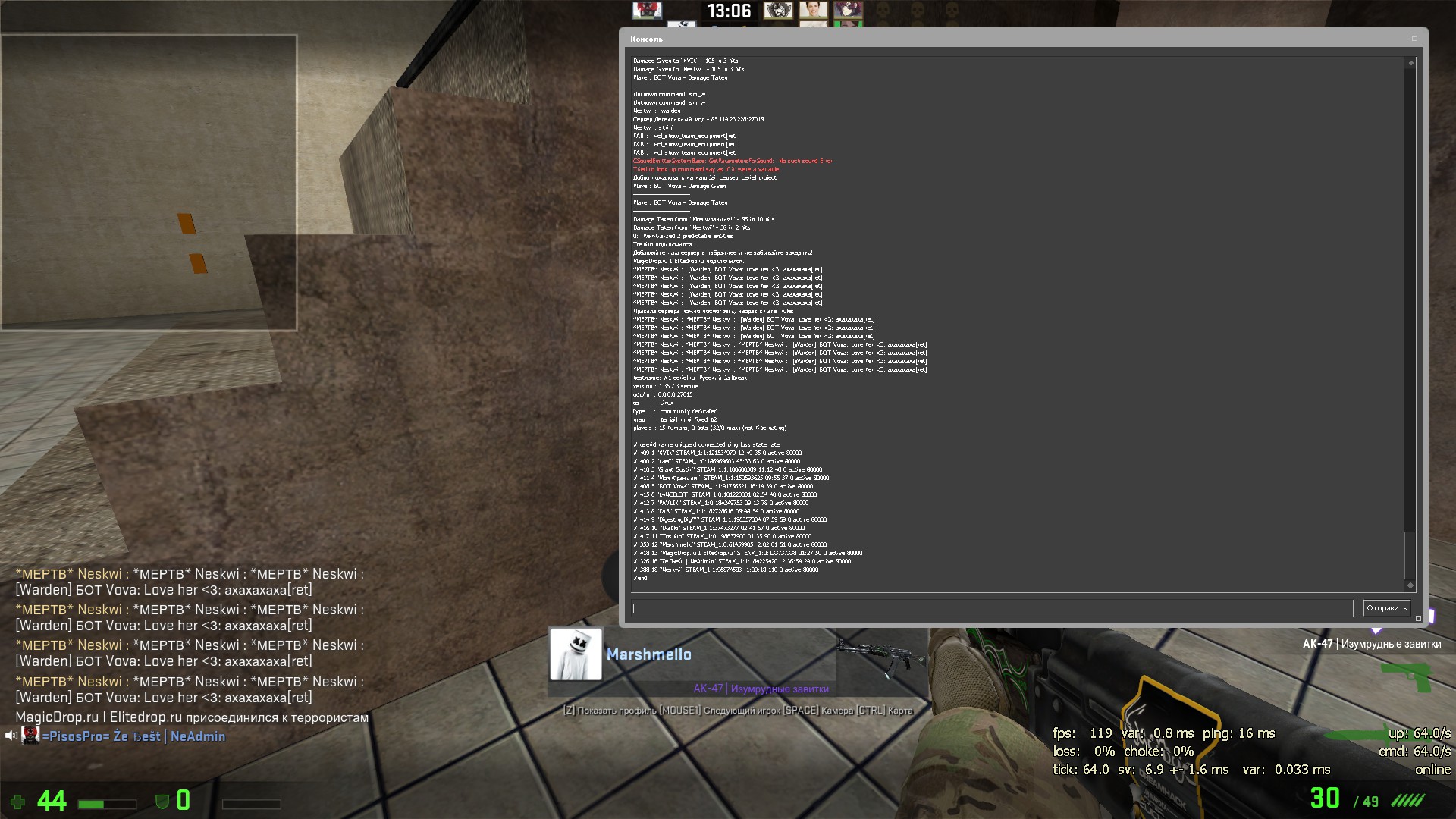 Зарегистрирован: 21:30:40, 18 дек 2015 Сообщения: 199 Игровой ник: Sanechka Steam_ID: STEAM_1:1:77839832 |