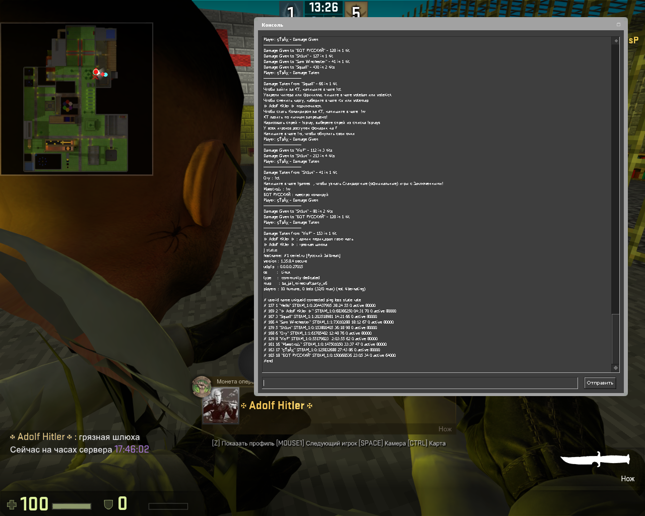Заголовок сообщения: "✠ Adolf Hitler ✠" STEAM_1:0:68366250