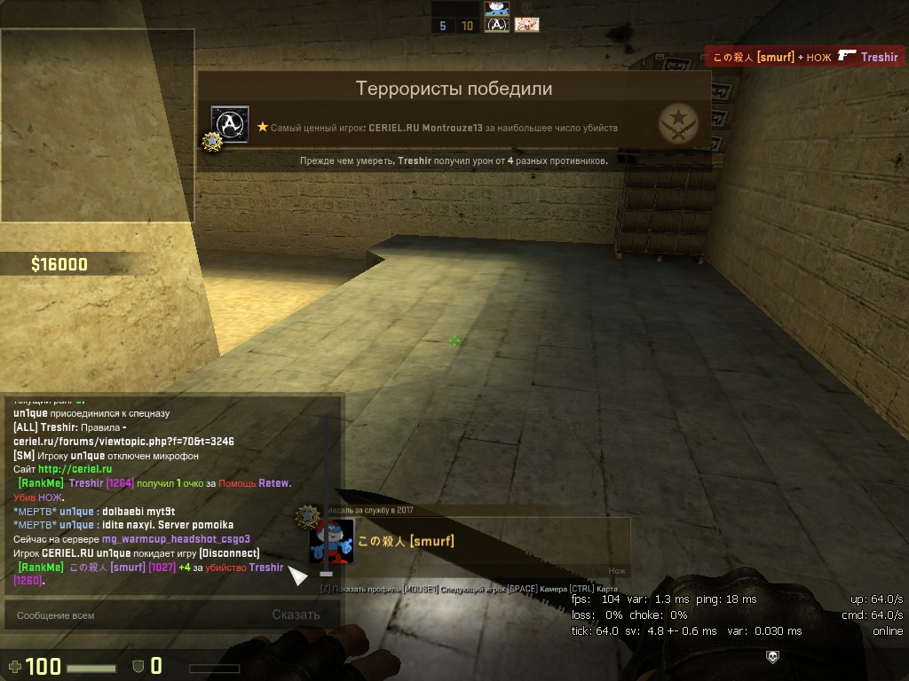 Зарегистрирован: 0:17:13, 8 мар 2016 Сообщения: 351 Откуда: Санкт-Петербург Игровой ник: Treshir Steam_ID: STEAM_1:0:63934706 |