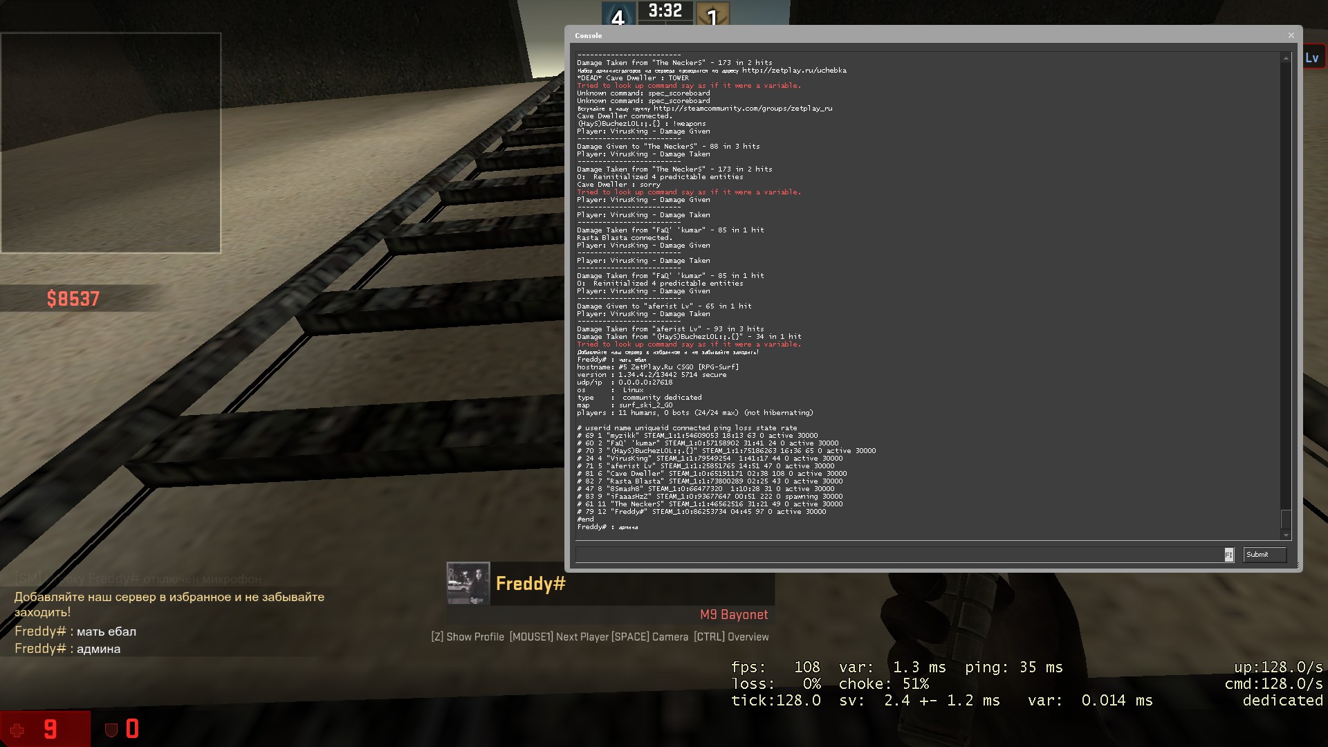 "Freddy#" STEAM_1:0:86253734 флуд микрофона, оскорбление админа 1 week ban