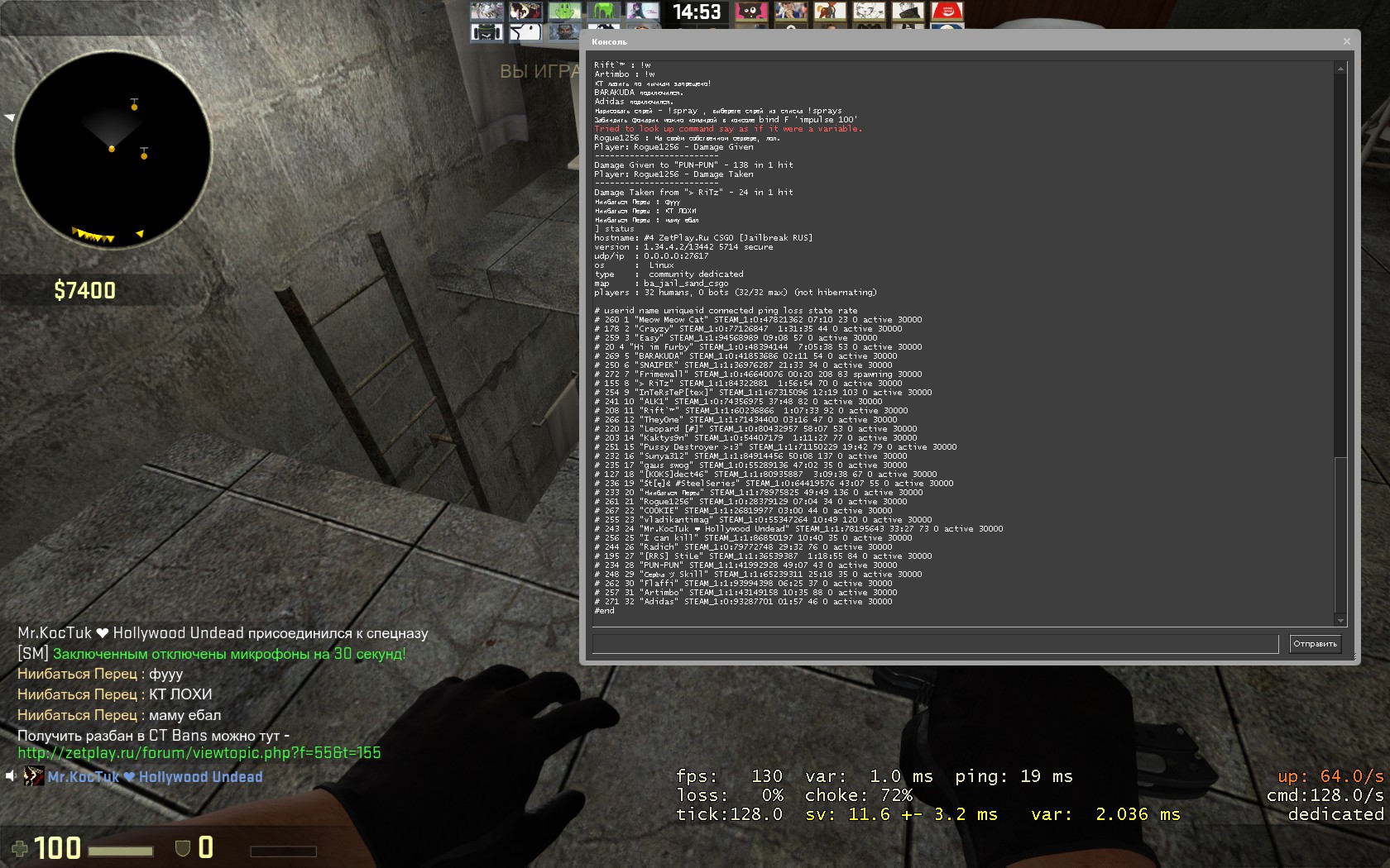 Заголовок сообщения: "Ниибаться Перец" STEAM_1:1:78975825