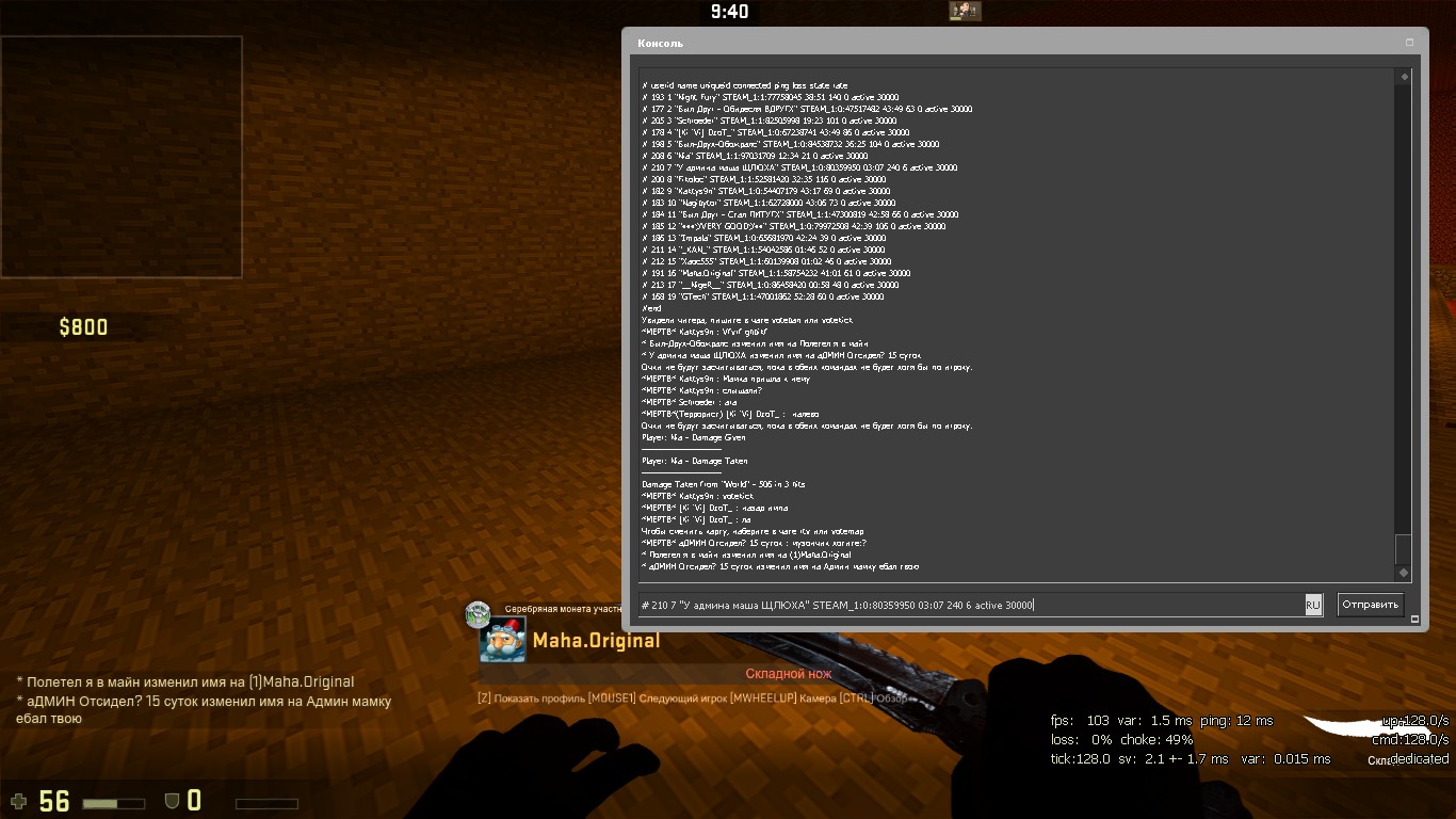 "У админа маша ЩЛЮХА" STEAM_1:0:80359950 -Inappropriate Language/week.