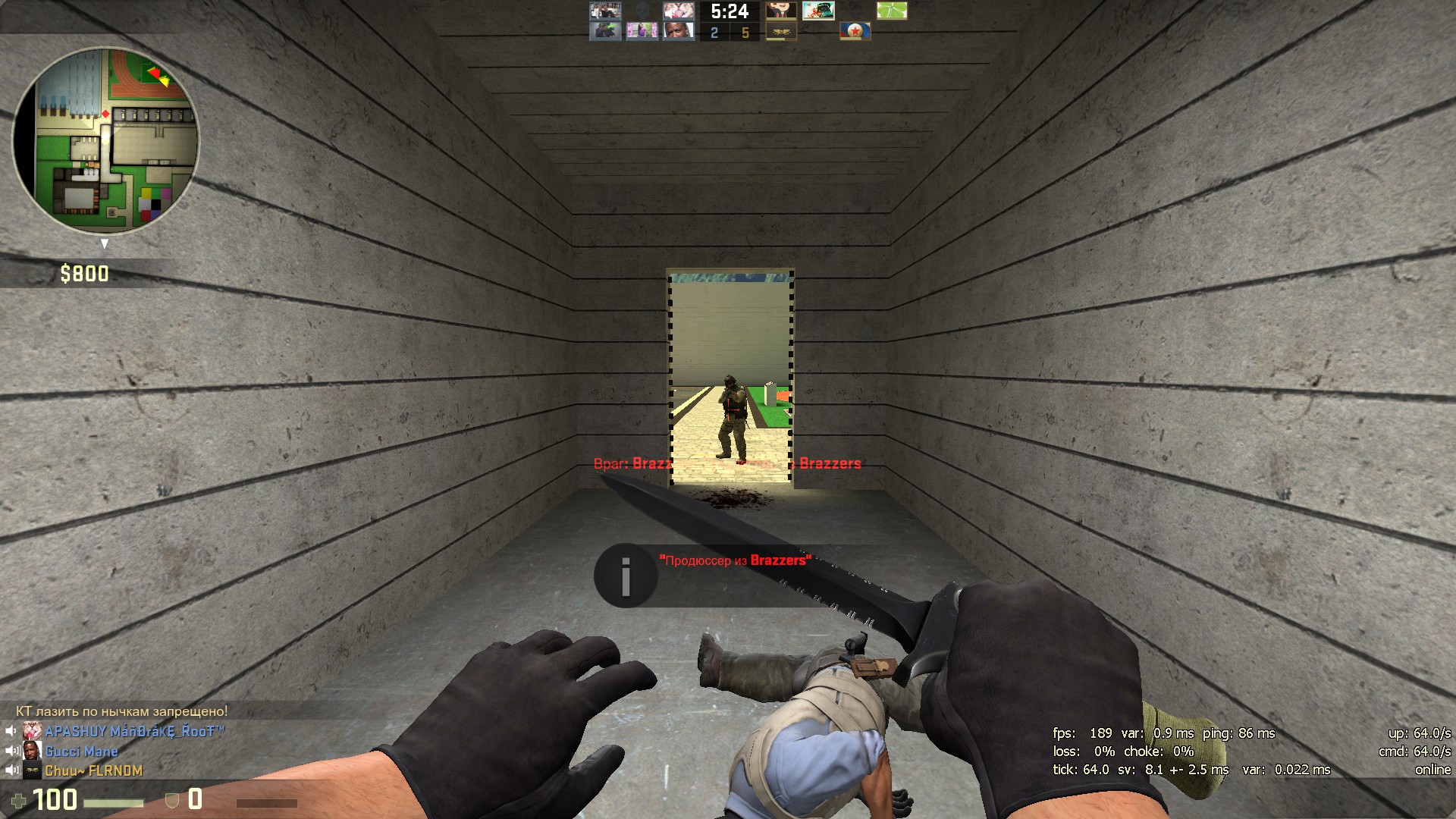 Каждый игрок сам за себя. Использование любого оружия кроме ножа - килл. Заход в лечебку - килл.