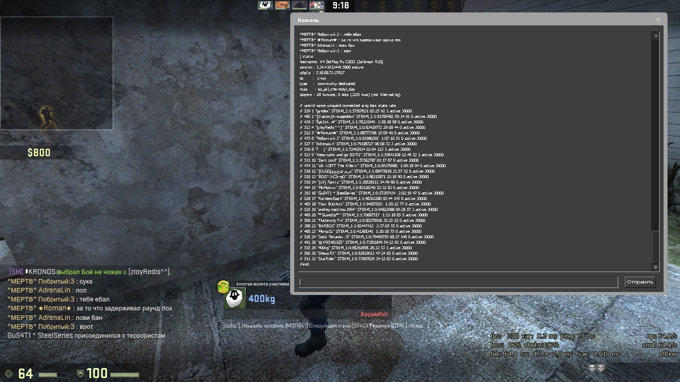 Нарушение: оскорбления игроков сервера.